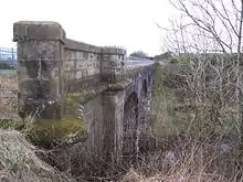 On 28 May 1848 a line opened between Irvine and Busbie, about 2 miles (3.2 km) north-west of Kilmarnock; a short branch to Irvine Harbour opened on the same day.[4][20][21] The Cumnock line as far as Auchinleck and the Muirkirk branch from that point, opened on 9 August.[4][10] This included the Ballochmyle Viaduct, located near Catrine; it was built with a central span of 181 and 175 feet (55 and 53 m) high above the River Ayr. It was the largest masonry arch span in the world at the time of its completion, and is the highest railway bridge in Britain.[22]