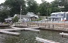 According to the New Jersey Postal History Society, "Despite the lack of an official designation, almost everyone refers to the town as Glasser, for Bill Glasser who purchased the property in 1910, said [former postmaster] Elmer Hobbs. According to the postmaster, Glasser built a general store where the post office now stands. At the time, the only post office in the area was in Landing, on the southern end of the lake. A narrow, unfinished road was the only way to get by land from one end of the lake to the other. As a service to his customers and neighbors, Glasser picked up their mail (via boat in summertime) and allowed neighbors to pick up their mail at his general store. In 1933, the post office made Glasser a postmaster because it was determined that he could not otherwise be permitted to carry mail that did not belong to him. When ZIP codes came into existence, they gave him one — 07837 — and started calling the town Glasser. "They didn't want to call it Henderson. It's a cove on the lake. The area's also known as Northwood. But there were too many Northwoods and Hendersons in the postal system," said Hobbs. The name then began showing up on maps, marked as a dot on the Sussex-Morris county border. "It's not an official town," said Rusby. "But if you have a post office, you get put on the map."[2]