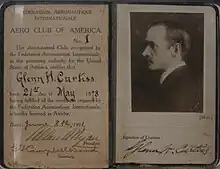 Between 1908 and 1910, the AEA produced four aircraft, each one an improvement over the last. Curtiss primarily designed the AEA's third aircraft, Aerodrome #3, the famous June Bug, and became its test pilot, undertaking most of the proving flights. On July 4, 1908, he flew 5,080 ft (1,550 m) to win the Scientific American Trophy and its $2,500 prize.[15] This is considered to be the first pre-announced public flight of a heavier-than-air flying machine in America. The flight of the June Bug propelled Curtiss and aviation firmly into public awareness. On June 8, 1911, Curtiss received U.S. Pilot's License #1 from the Aero Club of America, because the first batch of licenses were issued in alphabetical order; Wilbur Wright received license #5. At the culmination of the Aerial Experiment Association's experiments, Curtiss offered to purchase the rights to Aerodrome #3, essentially using it as the basis of his Curtiss No. 1, the first of his production series of pusher aircraft.[16]