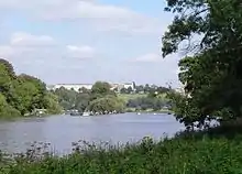 In 1872 the island, then called Petersham Ait, was bought by a Richmond-based waterman named Joseph Glover for £70 (equivalent to £7,000 in 2021);[1] he later advertised it for resale in 1895. Clementine trees were planted on the island in 1897. Sir John Whittaker Ellis, Mayor of Richmond,[1] had a house along the aristocratic row on the place with the highest, definitive Thames Arcadia view.[3] This is on the steep terrace of Richmond Hill above public pleasure gardens. Ellis declined to buy the island at £5,000 (equivalent to £614,000 in 2021), so suggested that the Richmond Corporation should be approached.[1] The view itself had been painted by John Wootton in about 1740 as A View From Richmond Hill. An English Arcadia.