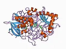 - ↑ Bannwarth M, Bastian S, Heckmann-Pohl D, Giffhorn F, Schulz GE (2004). "Crystal structure of pyranose 2-oxidase from the white-rot fungus Peniophora sp". Biochemistry. 43 (37): 11683–90. doi:10.1021/bi048609q. PMID 15362852.