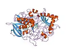 - ↑ Li J, Vrielink A, Brick P, Blow DM (November 1993). "Crystal structure of cholesterol oxidase complexed with a steroid substrate: implications for flavin adenine dinucleotide dependent alcohol oxidases". Biochemistry. 32 (43): 11507–15. doi:10.1021/bi00094a006. PMID 8218217.