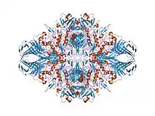 In molecular biology, Glycoside hydrolase family 2 is a family of glycoside hydrolases EC 3.2.1., which are a widespread group of enzymes that hydrolyse the glycosidic bond between two or more carbohydrates, or between a carbohydrate and a non-carbohydrate moiety. A classification system for glycoside hydrolases, based on sequence similarity, has led to the definition of >100 different families.[1][2][3] This classification is available on the CAZy web site,[4][5] and also discussed at CAZypedia, an online encyclopedia of carbohydrate active enzymes.[6][7]
