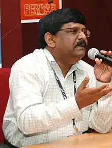 Gnana Rajasekaran (born 23 January 1953) is an Indian filmmaker, screenwriter, playwright and Retired IAS Officer.[1] His directional debut was Mogamul (1994) won the Indira Gandhi Award for Best Debut Film of a Director. His other works include Bharathi (2000), Periyar (2007) and Ramanujan (2014). As of 2014, Rajasekaran has won three National Film Awards, three Tamil Nadu State Film Awards. His films have been screened at international film festivals including the International Film Festival of India.[2]
