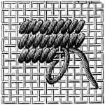 This is worked over two horizontal threads and one perpendicular. In a frame, you can work the second row, from right to left, otherwise, you must turn the work round, and bring out your needle behind the last-made stitch.[2]