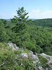 The Gogebic Range is an elongated area of iron ore deposits located within a range of hills in northern Michigan and Wisconsin just south of Lake Superior. It extends from Lake Namakagon in Wisconsin eastward to Lake Gogebic in Michigan, or almost 80 miles. Though long, it is only about a half mile wide and forms a crescent concave to the southeast. The Gogebic Range includes the communities of Ironwood in Michigan, plus Mellen and Hurley in Wisconsin.[1]
