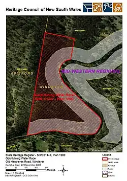 Gold Mining Water Race is a heritage-listed piece of mining infrastructure at Old Hargraves Road, Windeyer, Mid-Western Regional Council, New South Wales, Australia. It was built from 1855 to 1865 by Chinese miners, probably from Southern China. It was added to the New South Wales State Heritage Register on 22 December 2000.[1]