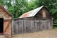 A barn of vertical slab construction has been extended with new and recycled slabs. The garden located between the inn and cottage is dominated by a large, mature magnolia (Magnolia grandiflora) and two large camellias (Camellia japonica "Variegata" and Camellia japonica 'Triumphans'). The "Triumphans" camellia was identified as the oldest in Australia by Professor Eben Gowrie Waterhouse, eminent camellia authority. Photographic evidence suggests that the magnolia and camellias may date from the 1850s.[1]