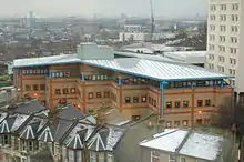 The Professor Stuart Hall Building (formerly the New Academic Building), situated next to the green, is home to the Media and Communications Department and the Institute for Creative and Cultural Entrepreneurship (ICCE).[14] Facilities include a 250-seat lecture theatre, seminar and teaching rooms, as well as a cafe with outdoor seating.