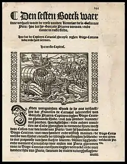 Born in Trujillo, Spain, Gonzalo Pizarro accompanied his eldest brother, Francisco Pizarro, in his third expedition for the conquest of Peru in 1530.[1]: 136 Gonzalo was also the brother of Hernando Pizarro and Juan Pizarro.[2]: 27 A lieutenant of his brother Francisco during the conquest, Gonzalo Pizarro was one of the most corrupt, brutal and ruthless conquistadors of the New World, being far less restrained towards the natives and the Inca than his older brothers.
