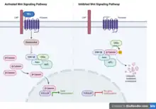 In the absence of Wnt, Wg fails to activate, allowing WSDC to break down β-catenin, and preventing activation of genes.[14]