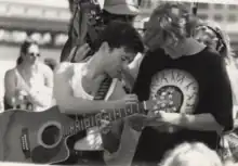 Gano joined Violent Femmes in Milwaukee in 1981[3] with bassist Brian Ritchie and drummer Victor DeLorenzo. They soon developed an enthusiastic following thanks to songs such as "Blister in the Sun," "Kiss Off" and "Add It Up" (all included on their self-titled debut album). The band has experimented with a variety of sounds over the course of its career, such as country and western (Hallowed Ground) and gospel (The Blind Leading the Naked). Gano plays guitar, sings and writes most of the band's songs.