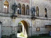The entrance of Prešnik Mansion, decorated with tin sculptures