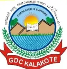 Government Degree College Kalakote (GDC Kalakote) is a government run educational college located in the Kalakote town of Rajouri district in the Indian union territory of Jammu and Kashmir. It is affiliated with Jammu University and is recognised by the University Grants Commission.[1]