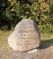 A building known as Borrehuset was constructed at the site in 1705. Marie Grybbe lived in the building with her husband Søren Sørensen Møller (or Søren Ladefoged). The ferry service was at this point host likely operated to the jetty in Gårbølle. Ludvig Holberg sought refuge in the building for a few months when Copenhagen was hit by an outbreak of plague in 1711.[2] Ludvig Holberg briefly mentions his encounter with Grubbe and her husband in his Epistle 89 (1749).[3]