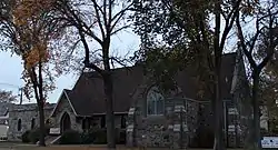 Grace Episcopal Church is an historic Episcopal church building located at 405 2nd Avenue, North East, in Jamestown, Stutsman County, North Dakota. Designed in the Late Gothic Revival style of architecture by British-born Fargo architect George Hancock, it was built 1884 of local fieldstone exterior walls and a wooden roof. Early parish records contain several assertions that George Hancock modeled the church after Christ Episcopal Church (Medway, Massachusetts)[2] which had been opened in 1881, but if he did, it was only in a very general, not specific way. Hancock's later work St. Stephen's Episcopal Church (Casselton, North Dakota) is much more closely related to Christ Church, Medway. On December 3, 1992, Grace Episcopal Church was added to the National Register of Historic Places. [3] [4] [5]