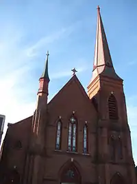 Grace United Methodist Church is a historic Methodist Church building at 34 Court Street in Keene, New Hampshire. Built in 1869, it was designed by architect Shepard S. Woodcock, and is one of the largest churches in southwestern New Hampshire. It was added to the National Register of Historic Places in 1985.[1] Its congregation moved in 2009 and was disbanded in 2016, and the building is (as of 2018) undergoing renovation for use as professional offices.
