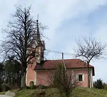 The local church is dedicated to Saints Primus and Felician and belongs to the Parish of Želimlje. It was originally a 12th-century Romanesque building that was restyled in the Baroque style in the 17th century.[6]