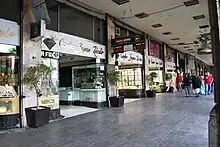 Old Portal de Mercaderes in the historic center of Mexico City was and is the west side of the main plaza (otherwise known as the "Zócalo"). This side of the plaza has been occupied by commercial structures since the Spanish Conquest of the Aztec Empire in 1521.[1][2] Today the west side of the square is dominated by two sets of buildings with Madero Street dividing them as it runs west from the Zocalo to the Palace of Bellas Artes. The buildings on the north side of Madero is occupied by offices on the upper floors and shops at ground level. The southside buildings are dominated on the ground floor by fine jewelry stores, marking the beginning of the "Centro Joyero Zocalo." This center extends west for two block engulfing Palma Street between Madero and 16 de Septiembre streets.[3] Most of the upper floors of the buildings here are occupied by rooms associated with the Hotel de Ciudad de Mexico and the Hotel Majestic.[4][5]