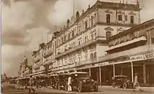 The house was converted into a boarding house by Mrs. Annie Monk who later expanded her business to include Numbers 14, 15 and 17. 16 Chowringhee was occupied by a theatre owned and managed by Arathoon Stephen, an Armenian from Isfahan. When, in 1911, the theatre burned down, Stephen bought out Mrs. Monk and, over time, redeveloped the site into what now makes up the modern hotel.[1] Built in an extravagant neoclassical style, the hotel soon became a popular spot amongst the English population of Calcutta. It was known, in particular, for its annual New Year party that, along with iced champagne and expensive gifts, involved the release of twelve piglets in the ballroom. Anyone who caught a piglet, could keep it.[1]