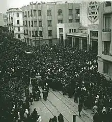 The idea for a synagogue was originally requested by the 19th-century Italian Jewish statesman Giacomo Di Castelnuovo, and finally established in 1937 by French architect Victor Valensi, who chose to design it in the Art Deco architectural style.[1] The synagogue was shut down by Nazi Germany during the German occupation of Tunisia, but resumed operations after the country was liberated by Allied forces.[2]