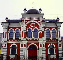 The Aesopian synagogue was built in 1895.[2] It was designed in Neo-Moorish style by Nikolay Gordenin. Gabriel Yakob Rozenberg, a merchant, financed the building.[2] In 1915 the building was reconstructed by Valerian Rykov. The reconstruction was financed by Vladimir Ginzburg, a nephew of Rozenberg.