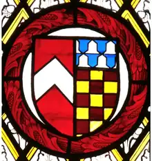 - ↑ Given incorrectly by Vivian, 1895, p.378 as the arms of Cantilupe. The arms of Denys were the arms of Cantilupe debruised by a bend engrailed azure, suggesting some unknown feudal or familial connection with the Cantilupe family. Thomas de Cantilupe (c. 1218 – 1282), Bishop of Hereford, was the first of his family to adopt the jessant-de-lys arms, which he showed reversed, i.e. upside-down, which replaced the ancient Cantilupe arms of three fleurs-de-lys, visible on the Bishop's seal. They became in his honour the arms of the See of Hereford. These arms of Denys were later used by the Tennyson family (perhaps "Denys's son") of which the poet Alfred, Lord Tennyson was a member. The arms of Bonville are not shown on the escutcheon, possibly as John Bonville of Combe Raleigh was a bastard, but the arms of his heiress wife Denys are shown