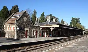 Great Malvern railway station is one of two stations serving the town of Malvern, Worcestershire, England (the other being Malvern Link station) on the Hereford to Worcester section of the Cotswold Line. It is situated downhill from the centre of Great Malvern and close to Barnards Green. The station retains most of its original Victorian station design by the architect Edmund Wallace Elmslie and is a Grade II listed building.[1]