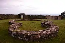 The sturdy Devín Castle, in vicinity of Bratislava, guarded Great Moravia against attacks from the West.[198] Although some authors claim that it was built only later as a stronghold of the Kings of Hungary,[199][200] excavations have unearthed an older Slavic fortified settlement founded in the 8th century.[198] During the Great Moravian period, Devín Castle was a seat of a local lord, whose retainers were buried around a stone Christian church.[198] These two castles were reinforced by smaller fortifications in Devínska Nová Ves, Svätý Jur and elsewhere. Another example is the fortress at Thunau am Kamp near Gars am Kamp, overlooking the river Kamp in Lower Austria. The defences here re-utilised banked defences of the Bronze Age and were only slightly smaller (fifty acres) than the area of the contemporary Frankish Emperor's capital of Regensburg.[201]