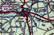 A 16-mile (26 km) double-track railway had been proposed from Lossiemouth to Craigellachie in 1841 and necessary permissions granted in 1846, the route having changed to take advantage of the proposed Great North of Scotland Railway between Elgin and Orton. The financial situation delayed construction, but work eventually started on the section from Lossiemouth to Elgin in 1851. The 5+1⁄2-mile (8.9 km) line opened on 10 August 1852 with a special train from Elgin to festivities in Lossiemouth. Public services started the next day with five services a day, each taking 15 minutes with two request stops.[47] First and second class accommodation was provided at 1+1⁄2d and 1d a mile. However, it was the Inverness & Aberdeen Junction Railway (IAJR) who was to build the line from Elgin to Orton; permission to build a branch from this line to Rothes was granted to the Morayshire on 14 July 1856.[48] The IAJR built its own station at Elgin, linked to the Morayshire's station by a junction to the east. The IAJR opened on 18 August 1858 and the Morayshire Railway started running services on 23 August.[49]