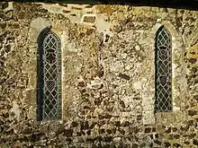 The original east window was blocked later, and two lancet windows were inserted in its place in the 13th century.[2][3] Similar windows were added to the north and south walls at the same time. The 12th-century entrance in the north wall was also bricked up, but its stone jambs are still visible.[9]