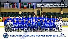 The Greek national ice hockey team (Greek: Εθνική Ελλάδος χόκεϊ επί πάγου) is the national ice hockey team of Greece and as an associate member of the International Ice Hockey Federation (IIHF) that competed in Division III of the IIHF World Championships.