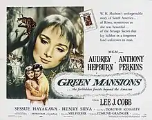 Green Mansions is a 1959 American adventure-romance film directed by Mel Ferrer. It is based upon the 1904 novel Green Mansions by William Henry Hudson. The film starred Audrey Hepburn (who at the time was married to Ferrer) as Rima, a jungle girl who falls in love with a Venezuelan traveller played by Anthony Perkins. Also appearing in the film were Lee J. Cobb, Sessue Hayakawa and Henry Silva. The score was by Heitor Villa-Lobos and Bronislau Kaper.