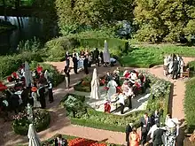 A green wedding is an eco-friendly and conscious consumption of resources that would otherwise be used in a traditional wedding.[2] Green wedding is a new lifestyle. Compared with the extravagance and waste of traditional weddings, today's green weddings are more economical and environmentally friendly. This can include recycling waste, choosing a sustainable venue, and even neglecting to participate in traditional practices that could be considered unsustainable, such as buying unethical source rings.[3] Many people who live sustainably believe it is necessary to continue the lifestyle by making sure their weddings are also sustainable. Others choose green weddings to raise awareness about how sustainability is important in daily activities and celebrations. The largest factor that contributes to the growing number of green weddings is the impact wedding celebrations can have on the environment. Many argue that without being conscious of practices and items used, the average wedding can generate a large amount of waste.[4]