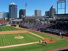 Downtown Greensboro has attracted development investment in recent years with such new construction as First National Bank Field, residential construction, and offices.[57][58][59][60][61] The Southside neighborhood downtown exemplifies central-city reinvestment. The formerly economically depressed neighborhood has been redeveloped as an award-winning neotraditional-style neighborhood featuring walkability, compact blocks and local amenities and services.[62][63][64][65]
