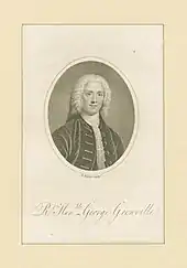 The Grenville ministry was a British Government headed by George Grenville which served between 16 April 1763 and 13 July 1765. It was formed after the previous Prime Minister, the Earl of Bute, had resigned following fierce criticism of his signing of the Treaty of Paris with its perceived lenient terms for France and Spain despite Britain's successes in the Seven Years War. Grenville's government was made up largely of the same members as Bute's had. George III had a violent dislike of the new government because of his resentment of the way they had replaced his favourite Bute.[1]