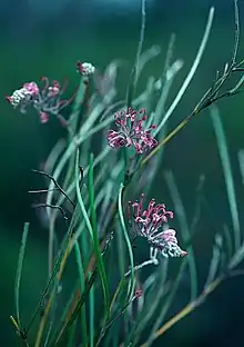 Grevillea reptans, also known as the Tin Can Bay grevillea,[2] is a species of flowering plant in the family Proteaceae and is endemic to south-eastern Queensland. It is usually a prostrate shrub with long vine-like or arching branches, more or less linear leaves, and branched clusters of mauve-pink flowers.