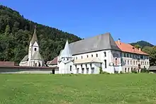 From about 1233 the Bamberg bishops had the Romanesque Griffen parish church enlarged and rebuilt as a Premonstratensian monastery. The first canons descended from Vessra Abbey in the Franconian County of Henneberg. The monastery complex was completed in 1272 and significantly enlarged by Baroque buildings in the 17th century. Griffen remained the only Premonstratensian abbey in the Inner Austrian lands until its abolition under the rule of Emperor Joseph II in 1786.