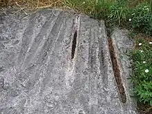 In Sweden, there are also grooves in north-western Scania and Halland. In Gantofta located 14 km (8.7 mi) south of Helsingborg a face of sandstone rock is engraved with thousands of grooves. Local tradition says they were made as whetstones.[1]