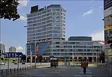 The Grunwald Square (Polish: Plac Grunwaldzki, [plat͡s grunˈvalt͡ski]), named after the Battle of Grunwald) is a former square, currently a major street and important transit point in Wrocław, Poland. The nearby universities (Wrocław University of Science and Technology, Wrocław University of Environmental and Life Sciences, some departments of University of Wrocław) and their dormitories make it one of the centres of student life in Wrocław. The central portion of the Grunwald Square has been redeveloped in 2006-2007 into a large oval-shaped roundabout with a major public transport hub in its centre.