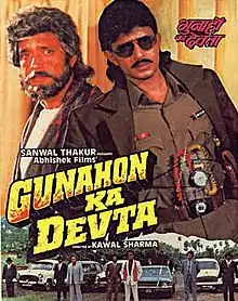 Gunahon Ka Devta (Translation: The God of crimes) is a 1990 Indian Hindi-language film directed by Kawal Sharma, starring Mithun Chakraborty, Sangeeta Bijlani, Aditya Pancholi, Sujata Mehta, Ranjeeta, Shakti Kapoor, Paresh Rawal, Kulbhushan Kharbanda, Danny Denzongpa.[1] This film was first offered to Divya Bharti, but her parents didn't permit her because they thought that she is very small in age to perform in this film. In 1990, Mithun Chakraborty played second time double role, before that he played in Paap Ki Kamaee and both films were directed by Kawal Sharma.