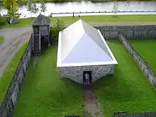 The No. 2 magazine was built by the Board of Ordnance and is the oldest magazine. It is 29-foot (8.9 m) long by 28-foot (8.6 m) wide. It has a groin-vaulted roof. The magazine is protected by earthen banks on two sides; with doors at both ends. The No. 1 magazine is newer; and was built sometime after 1828. It is 80-foot (24.5 m) long by 25-foot (7.6 m) wide and has solid walls, but is now roofless.[1]