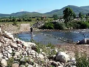 The Híjar river or The Híjar is a river in northern Spain whose waters give rise to the Ebro River. This was accredited as early as 1862 by Pedro Antonio de Mesa in the first known hydrogeographic survey.[1][2] This river runs more than 20 km from the headwaters of the Campoo Valley, and then part of its flow filters and makes a short subway journey of 800 m, resurfacing along with 4 other springs in the town of Fontibre, then receiving the name of "Ebro". The flow of the Hijar River that is not submerged continues along the surface in an easterly direction and joins the Ebro at Reinosa, a few kilometers downstream.[3] This fact was scientifically demonstrated by technicians from the Geological and Mining Institute of Spain in 1987, after pouring fluorescein into the river, and observing that the same flow filtered by the Híjar was the one that came out dyed in the Fontibre spring.[4]