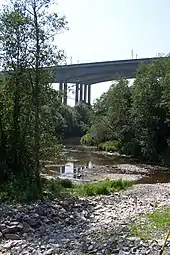 The Hølendalen Bridges (Norwegian: Hølendalen broer) are three parallel concrete cantilever bridge which cross Hølendalen in Vestby, Norway. One carries two tracks of the Østfold Line, the other two carry four lanes of European Road E6. The bridges have four spans, the two in center at 128 meters (420 ft) and the two outer at 80 meters (260 ft). The overall lengths are 416 meters (1,365 ft). The bridges are up to 50 meters (160 ft) above the valley and the creek of Såna.