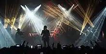 A photo exhibition by Ville Juurikkala, titled HIM: Right Here In My Eyes, was held at the Helsinki Art Museum from 15 June to 3 July, featuring previously unseen photographs of the band preparing for its farewell tour.[177] In November 2017, the exhibition was also held at the Morrison Hotel Gallery in New York City.[178] HIM began its Bang and Whimper 2017 – The Farewell Tour on 14 June 2017 in Barcelona, Spain.[179][180] The tour was generally well received, with the Nottingham Post stating that HIM "truly went out with a 'bang'".[181] The band played its final show on New Year's Eve 2017 as a part of the Helldone Festival.[182]