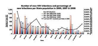 - ↑ "Country Comparison :: HIV/AIDS – Adult Prevalence Rate". Central Intelligence Agency. Archived from the original on 13 June 2007. Retrieved 9 July 2016.