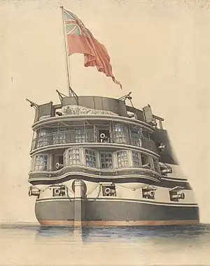 In 1858 she was converted to serve as a guardship, and during several years she was flagship of the Admiral-Superintendent of Portsmouth Dockyard.