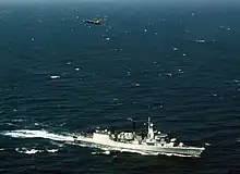 HNLMS Bloys van Treslong (F824) (Dutch: Hr.Ms. Bloys van Treslong) was a frigate of the Kortenaer class. The ship was in service with the Royal Netherlands Navy from 1982 to 2003. The frigate was named after Dutch naval hero Willem Bloys van Treslong. The ship's radio call sign was "PADG".[1]