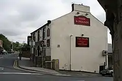 ![]() The Hare and Hounds pub, the first building in Haggate | |