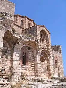 The Church of Hagia Sophia (Greek: Ἁγία Σοφία, romanized: Hagía Sophía, lit. 'Holy Wisdom' Greek pronunciation: [aˈʝia soˈfia]) or Holy Wisdom is a Byzantine church in the medieval town of Monemvasia, Peloponnese, Greece. It forms part of the wider archaeological site of Monemvasia. It was built on the upper town of Monemvasia, and was originally dedicated to Panagia Hodegetria. It is the most important monument of Monemvasia. The Venetians, who held Monemvasia for some time, used it as a Catholic church dedicated to Madonna, while during the Ottoman period it was converted into a mosque before being restored to Christian worship upon Greece's independence.